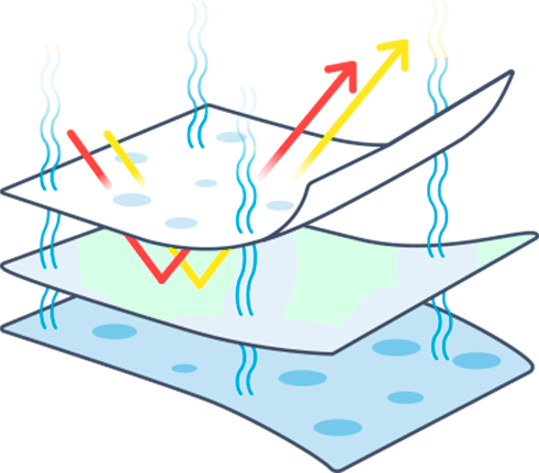 Внутренний слой маски быстро впитывает и пропускает через себя жидкость (выдыхаемую влагу, пот), фильтрующий нетканый материал в середине — поглощает и распределяет её по всей площади маски. При этом, благодаря микропористой структуре и серебряным волокнам Х-STATIC фильтрующий материал эффективно задерживает бактерии, препятствую их дальнейшему распространению. Наружный слой маски — гидрофобный и препятствует проникновению жидкости снаружи.